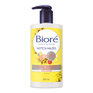 - Bioré® Witch Hazel Limpiador Refrescante: Esta fórmula, que contiene ácido salicílico y witch hazel, elimina la suciedad, grasa y maquillaje de los poros ayudando a vigorizar y refrescar, mientras elimina más del 99% de la suciedad y la grasa que pueden causar imperfecciones. Es lo suficientemente suave para un uso diario.