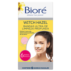 - Banditas Ultra de Limpieza Profunda Bioré® Witch Hazel: Extraen la suciedad y espinillas de los poros con dos veces más efectividad que las bandas originales. Además, ayudan a vigorizar la piel con su fórmula de aceite de árbol de té y hamamelis. Sus óptimos resultados se consiguen ya que eliminan la suciedad profundamente, evitando así la formación de espinillas, para que obtengas la limpieza más profunda.